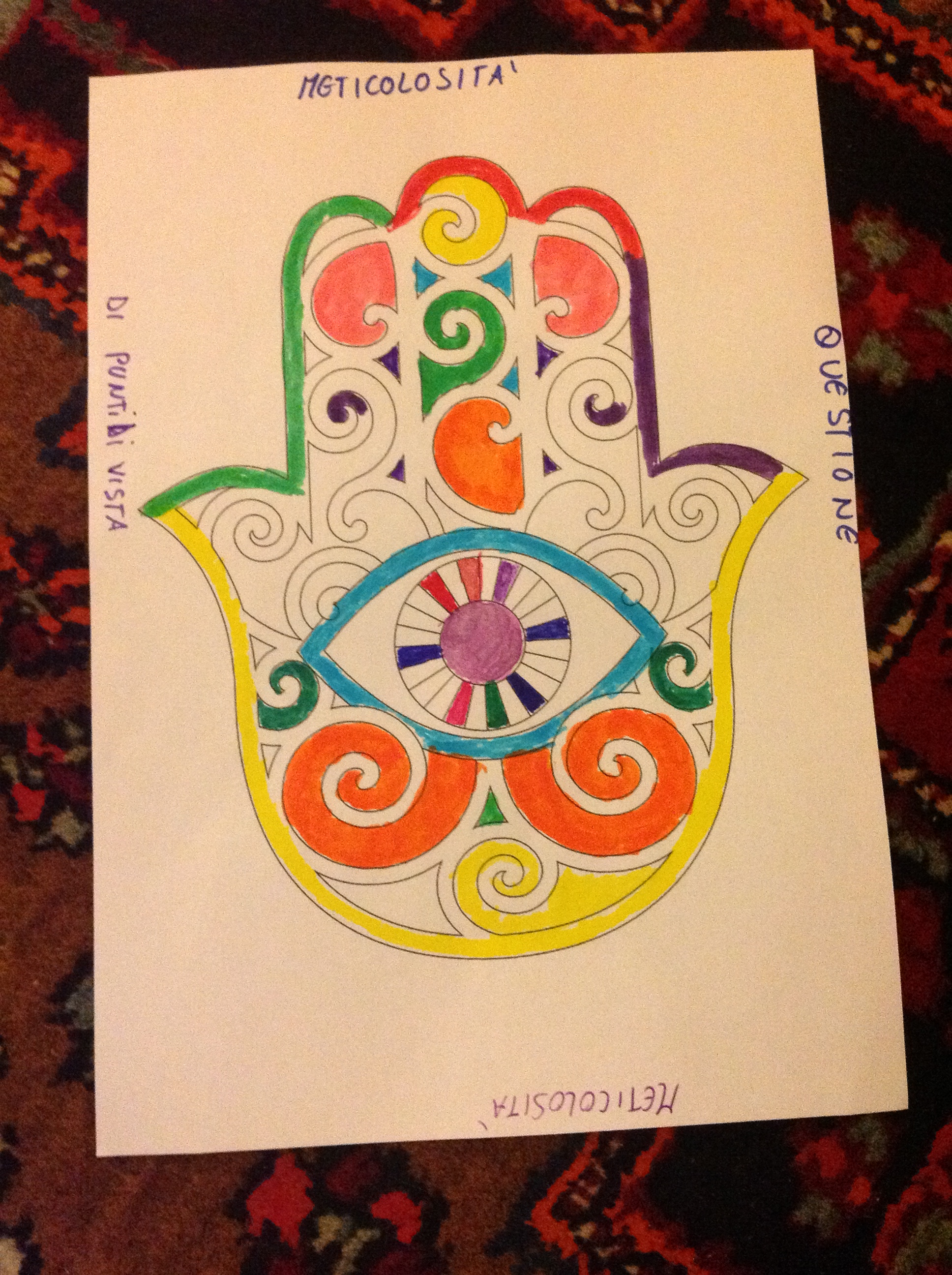 Voglio riempire la mia vita ed i miei occhi di colore. Desidero colmare o svuotare gli spazi attorno a me. Poiché come la mano porta l’ occhio dalla sua parte, io porto con me la fiducia e la serenità di essere me stessa, colei che coraggiosamente non smette mai di tentare, malgrado tutto.