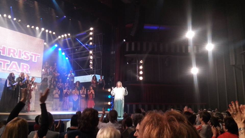 Il sipario si apre e appare Giuda, un magnifico Giuda direi, con lo stesso timbro vocale dell’ attore del 1973. Il suo timbro vocale e la sua grinta richiamano e rendono omaggio a Carl Anderson. Appare Caifa interpretato da Shel Shapiro, segue Anah con la sua vocetta, mi fa sorridere. Ci sono tutti gli ingredienti a me così familiari:i fiori, i figli dei fiori, l’ aria di ribellione e di cambiamento. Sta per arrivare, lui l’ atteso eh sì dopo 40 anni dall’ uscita del film … Lui Jesus Christ Superstar! La sua voce calda e tremolante simbolo della sua passione, del suo sapere cosa sta per passare, mi entra nel cuore. Sento l’ empatia, sento la catarsi, sento le sue emozioni, le sento tutte come ogni volta che inserisco il dvd. Soffro con lui quando teme la morte e parla con il Padre, il suo, il nostro. Una lacrima scende quando grida aiuto, quando si sente soffocare in mezzo ai lebbrosi, quando sente che gli è stato tolto un luogo sacro: un tempio trasformato in circo, in mercato.