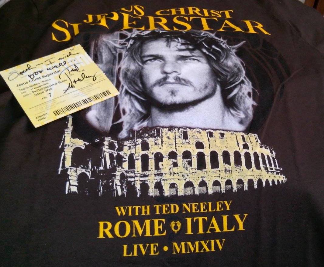 Ted Neeley ha reso questo spettacolo meraviglioso. E rimasto fedele al personaggio, ha riproposto lo stesso stato d’ animo. Ha riproposto la sua voce ancora forte come 40 anni fa. Un falsetto da paura come si dice a Roma. Sì il mio cuore ha sobbalzato, ce l’ ha fatta anche oggi che ha ben 71 anni!!! Un grande! Un grande anche perché ha concesso ai suoi fan quasi 10 minuti l’ uno. Una cinquantina di persone hanno avuto l’ onore di parlargli, di abbracciarlo, di avere un autografo e qualche foto. La mia amica Martina, ha fatto ben 2 ore e mezza di fila attaccata alla porta del teatro per ricevere un abbraccio da Ted! Ha resistito tutto quel tempo per lui. Ad un certo punto vengono distribuiti numeretti per fare la fila in maniera ordinata. Che organizzazione! E alla fine ecco che entriamo io e lei, è il nostro turno. C’ è molta emozione nei nostri occhi. Soprattutto in quelli umidi di Martina. La sua voce trema, non riesce a parlare. Ted apprezza questa connection. Le tiene le mani la conforta, si tengono per mano, si abbracciano, si ritrovano. Martina è felice, ha occhi brillanti e luminosi, è bello vederla così. E’ bella!
