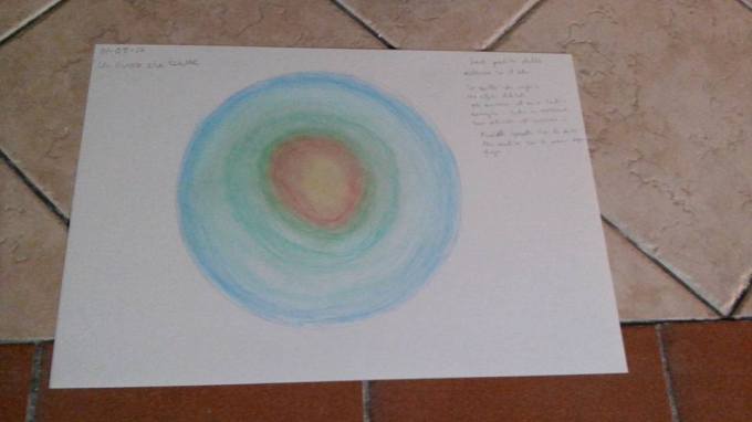 Ho amato molte come Lizi lasciandoci liberi nella scelta dei materiali da usare per disegnare il nostro mandala, io abbia scelto dei pastelli morbidi. Dentro me volevo toccarli e sfumarli con le dita… Mi sono data il permesso di farlo… E’ venuto un bellissimo mandala… morbido e fluido. Come a dire che dopo lo yoga avevo ancora necessità di sentire il mio corpo in contatto con le mie emozioni. Bellissimo.
