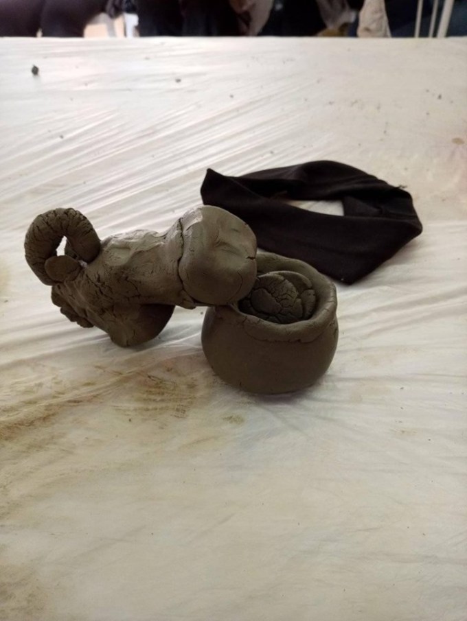 Abbiamo creato da un cubo, un parallelepipedo e una sfera di creta, un cavallo, il muso… Il mio somigliava ad un ippopotamo. L’ importante è il processo nel partire dai dettagli. Abbiamo creato un uccello a partire da due coni di creta. Il mio sembrava un anatroccolo… Tanto lo so che domani diventerà un cigno. La creta ha i suoi tempi come me… 😉